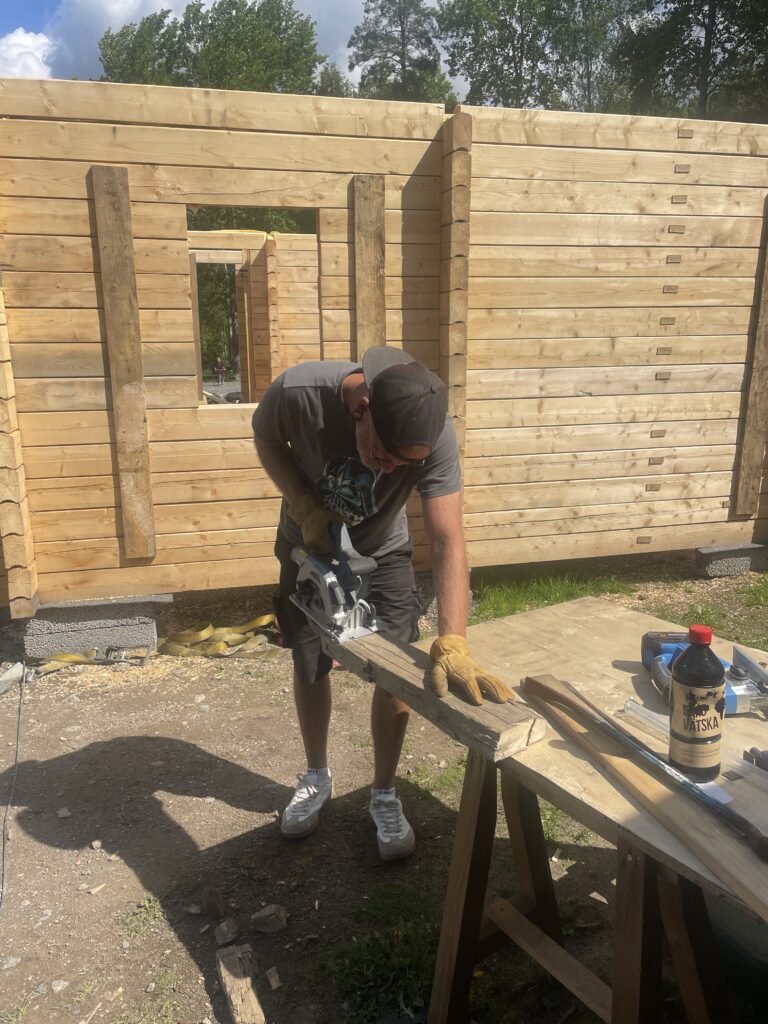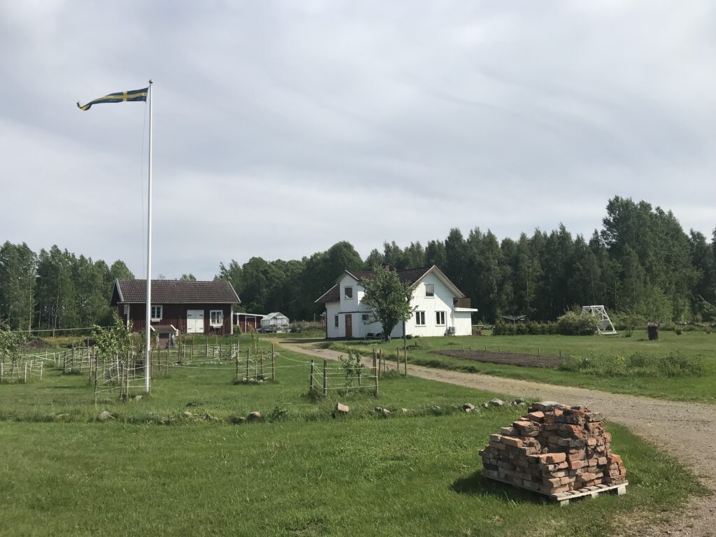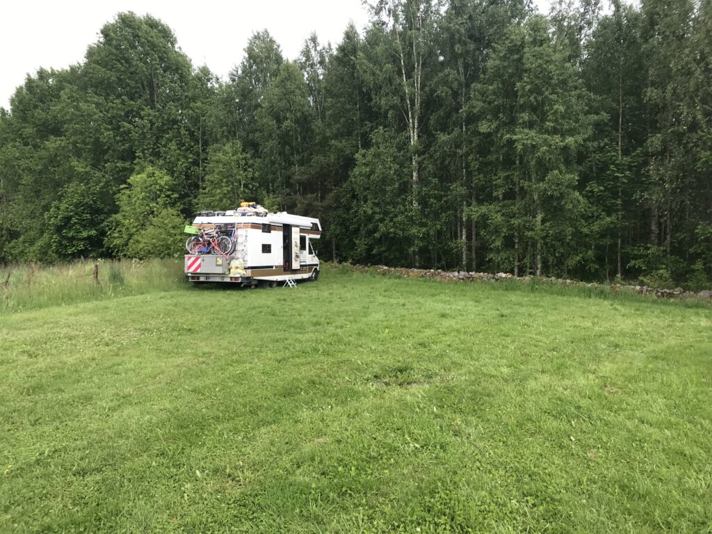 Hier bei Grängesberg haben Lidia und David (ein deutsch / polnisches Paar) vor knapp 2 Jahren einen alten Pferdehof gekauft, um hier dauerhaft zu leben. Neben dem Auf- und Umbau der eigenen 4 Wände entsteht hier ein einfacher Campingplatz. Die beiden packen ordentlich an, um das Ganze entstehen zu lassen. Sie freuen sich natürlich über jeden zahlenden Gast, aber auch über jede helfende Hand. So waren wir letztes Jahr im Juli schon einmal hier und haben eine Woche mitgeholfen. Als Gegenleistung konnten wir kostenlos stehen und bekamen auch öfter gutes Essen. Wir waren damals sehr angetan von dem Projekt und diesen beiden herzlichen Menschen, sodaß schnell der Entschluss in uns reifte, noch einmal hierher zu kommen. Ein kurzer Austausch mit David ergab, dass die beiden sich sehr über unseren Besuch freuen würden und Hilfe mehr als willkommen ist! So beschlossen wir, Edgars Geburtstag und damit auch das Mitsommerfest bei Lidia und David in Grängesberg zu verbringen.