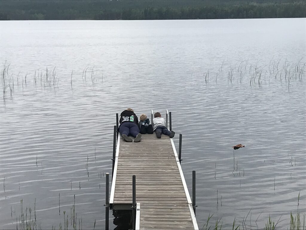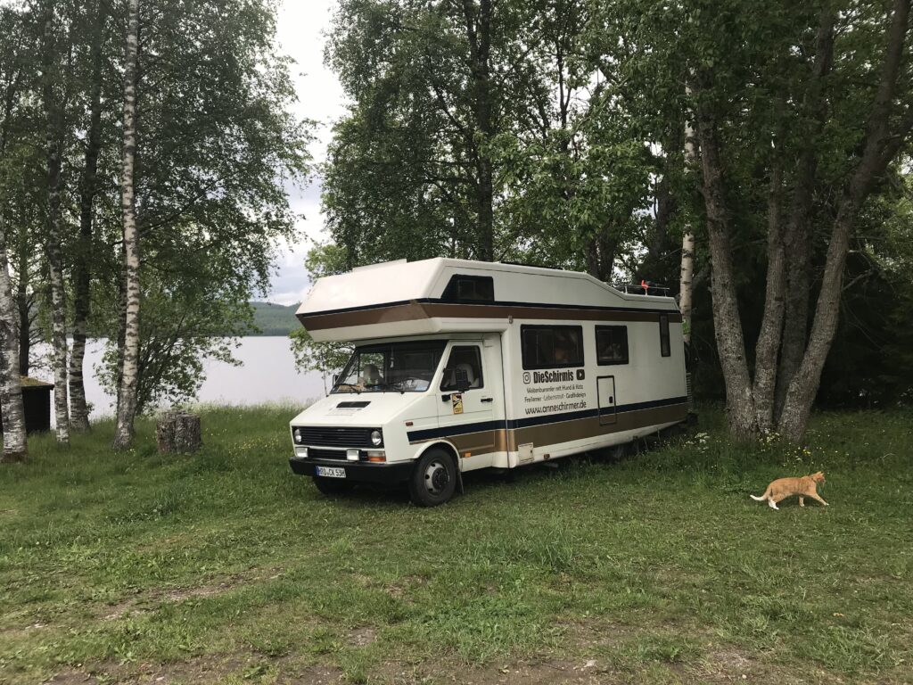 Unser nächster Stellplatz war ein schwedischer Traum! Mitten im Wald an einem See gab es einen Platz mit einfacher Holzhütte, Grillstelle (mit Grillrost, Holz und Axt 👍🏻), Sitzgelegenheiten und Holzsteg. Außer uns war nur noch ein weiterer deutscher Camper da. Wir entschieden uns aufgrund der Gegebenheiten für ein spontanes Grillen und Abendessen draußen. Herrlich 🥰! So lieben wir das Leben: einfach, spontan und naturnah. Nach einem Übernachtungsstopp in einem kleinen süßen Ort ging es weiter nach Grängesberg. Dort wartete im örtlichen Supermarkt schon ein Paket von meinen Eltern auf uns. Der Paketversand nach Schweden funktioniert problemlos und schnell 👍🏻. Wir nutzen die Gelegenheit, um unsere Vorräte wieder aufzufüllen und weiter geht es zu einem weiteren Stellplatz gegen Hand.